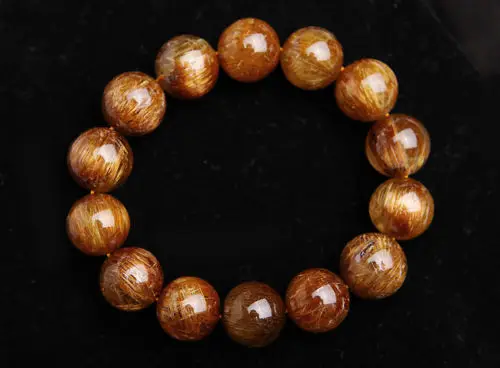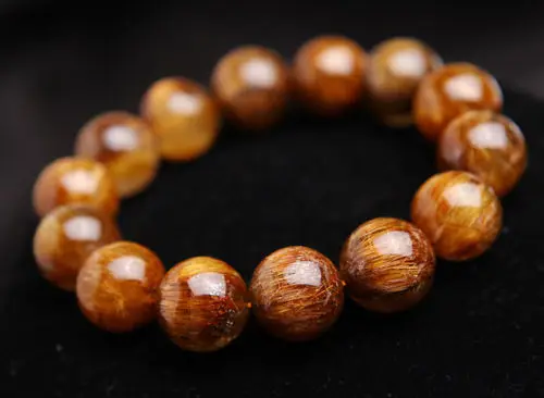 ORIGINAL huij 001671 Natural Brazil Copper Hair Rutilated Quartz Crystal Beads Bracelet